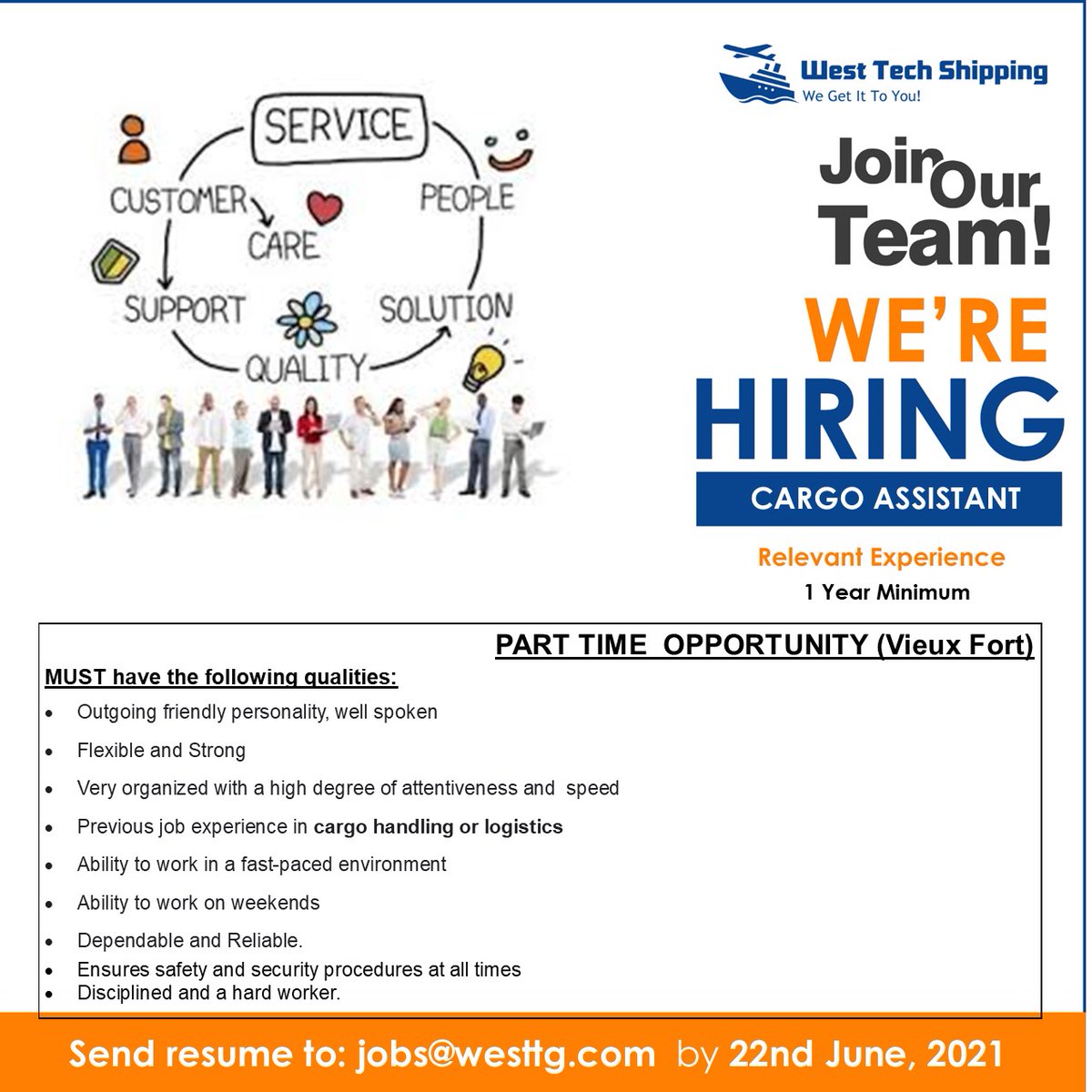 West Tech Shipping St Lucia En Twitter Cargo Assistant Part Time Please Note That This Opportunity Is In Vieux Fort Send All Applications To Jobs Westtg Com Good Luck Https T Co Czuvjeedik Twitter
